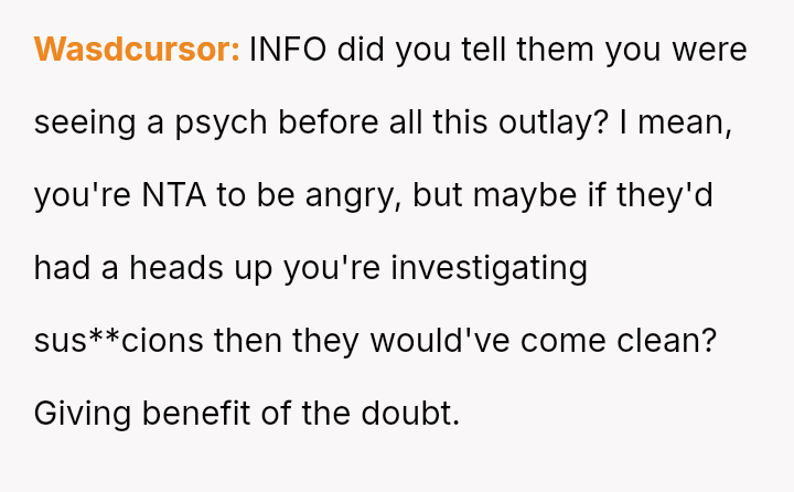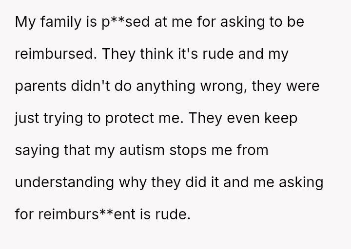 The central conflict lies between the OP's reasonable expectation for reimburs**ent due to preventable financial loss and the parents' defensive stance, which frames their past secrecy as protective action rather than a harmful omission.