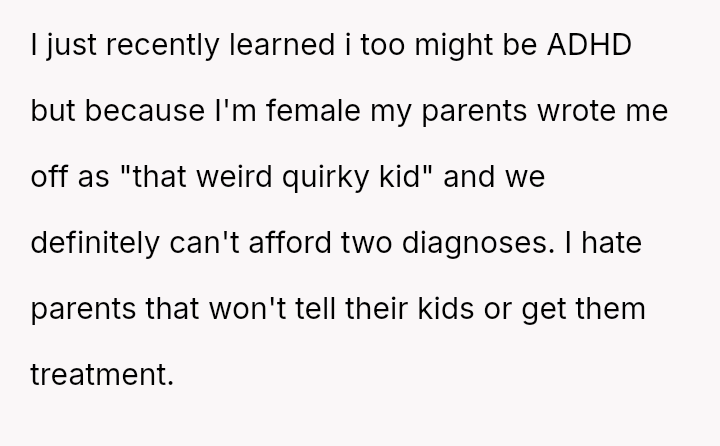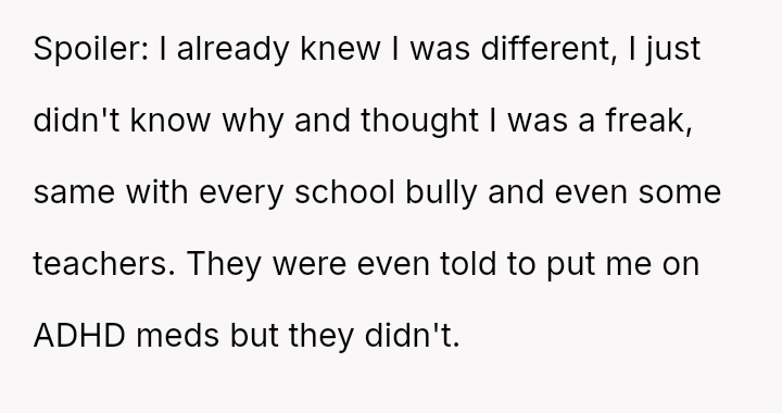 The revelation of her autism and ADHD diagnoses, though empowering and necessary, came with a bitter sting—$2300 spent out of pocket, a financial burden borne alone, only to discover that the answers were always within reach, concealed by those who should have protected her.