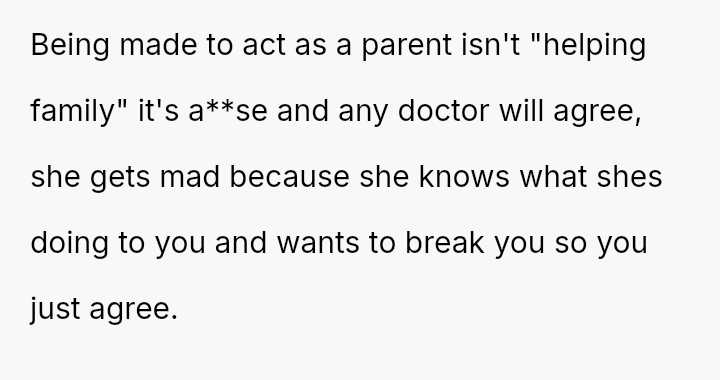 The core debate is where the line is drawn between parental expectation and adult-like responsibility for a young caregiver.