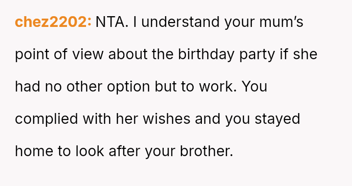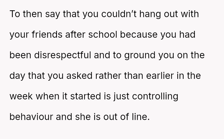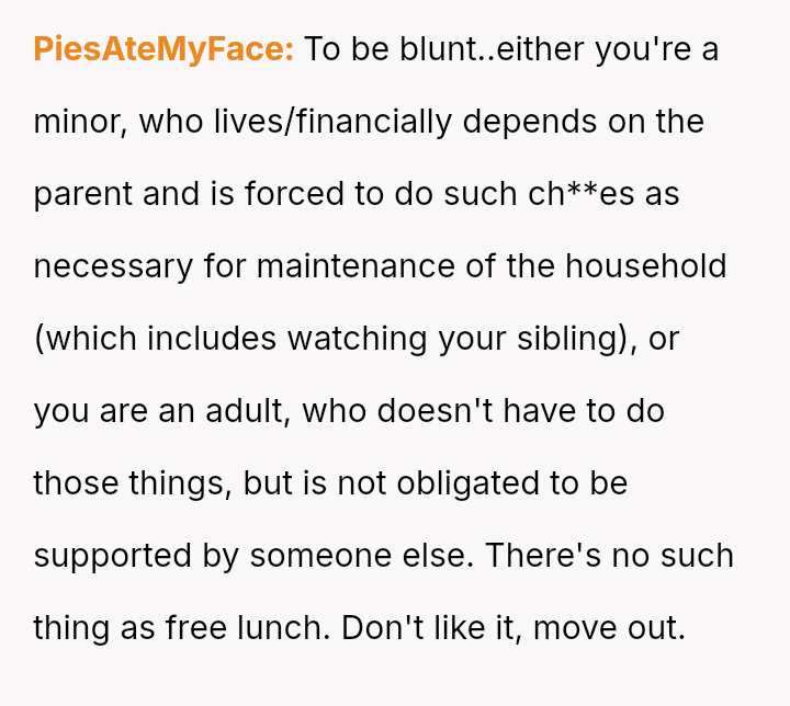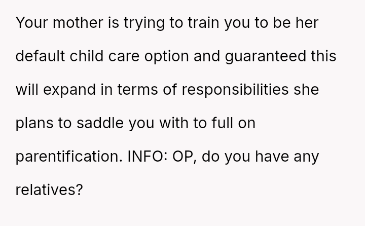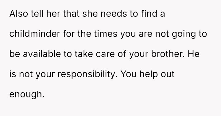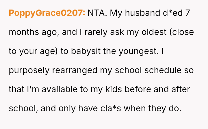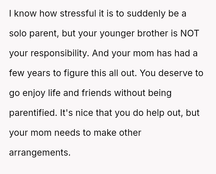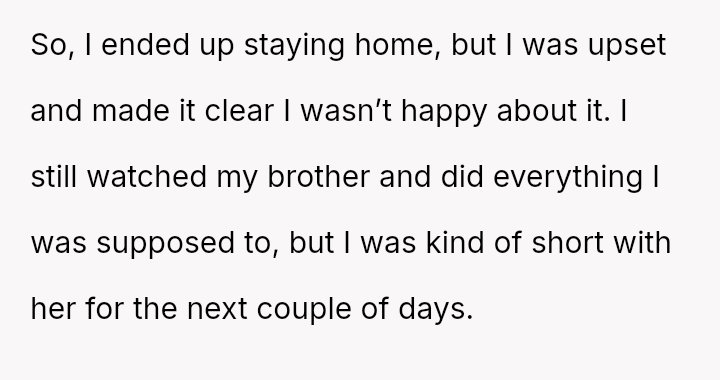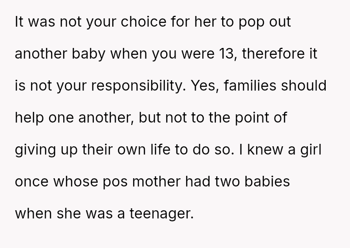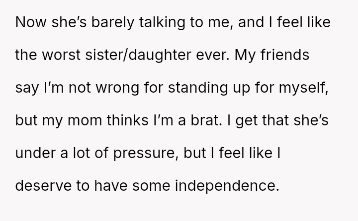 The original poster (OP) is caught between the demands of being a responsible older sister and daughter, which often requires sacrificing personal plans, and a growing need for teenage independence and social life.