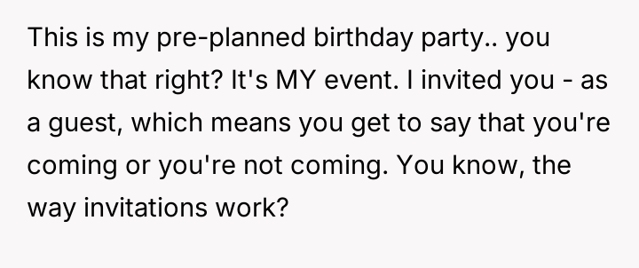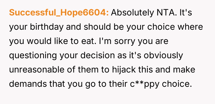 The core question for debate is whether the OP was justified in refusing to change his birthday dinner plans to accommodate his stepfamily, given their inflexible demands, or if the expectation to include them superseded his right to choose the venue for his own celebration.