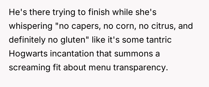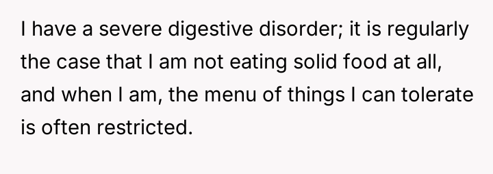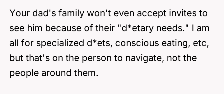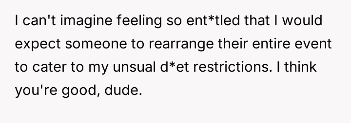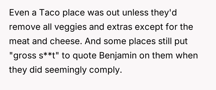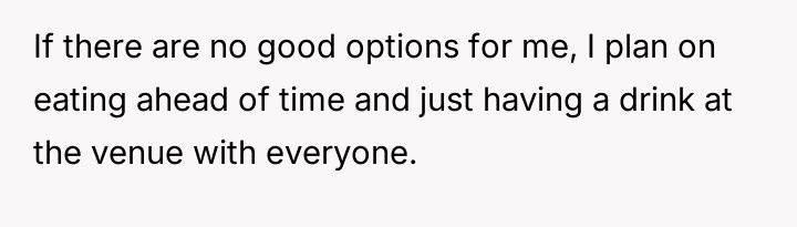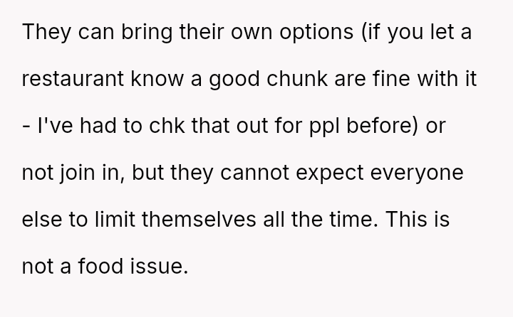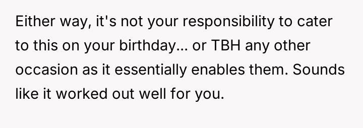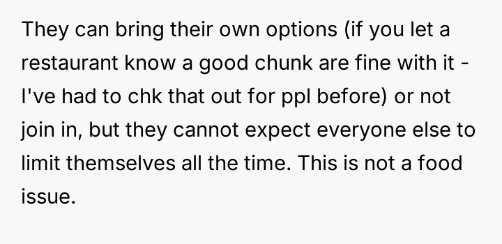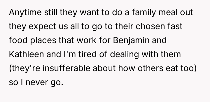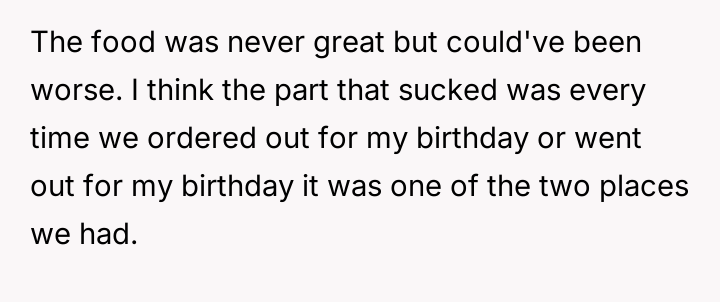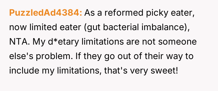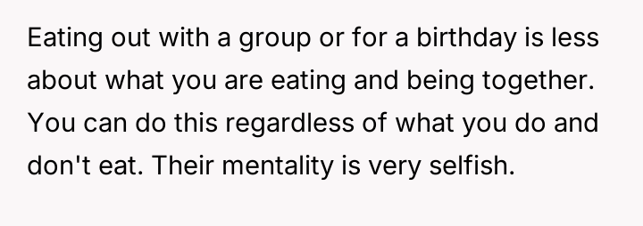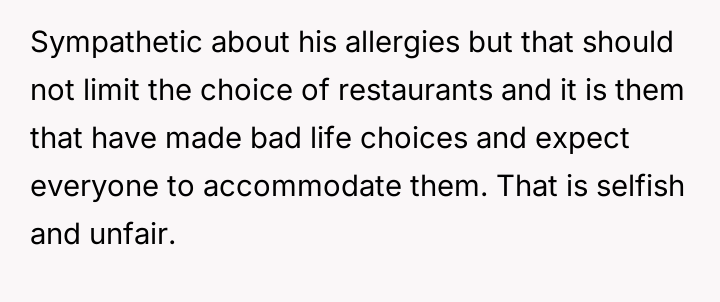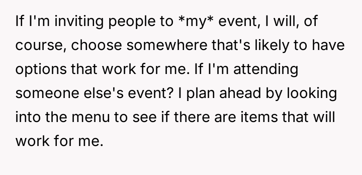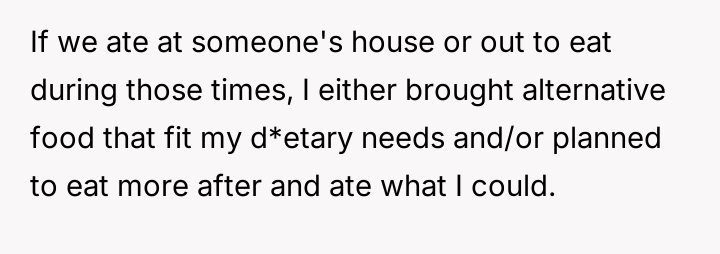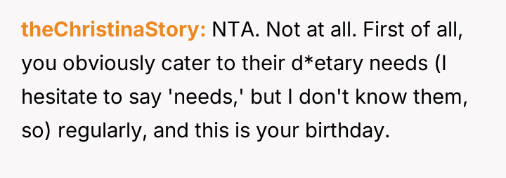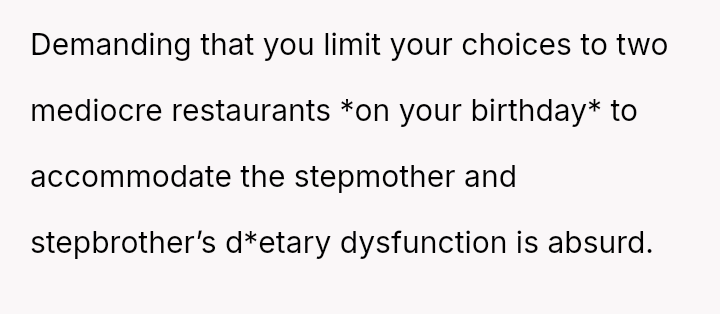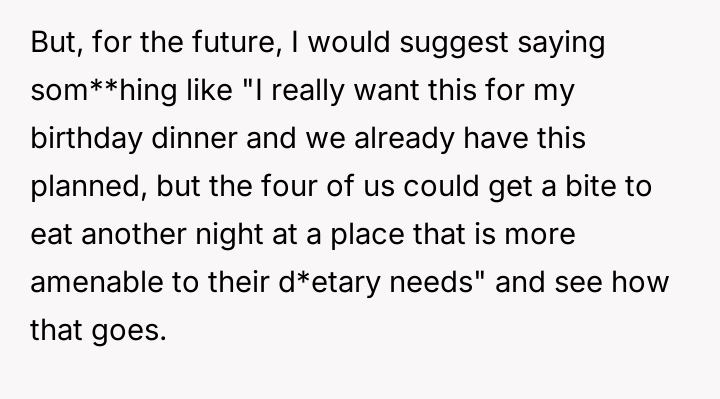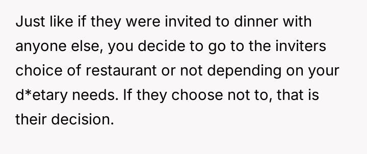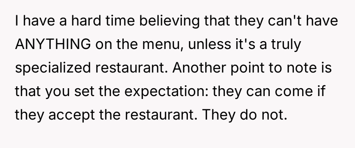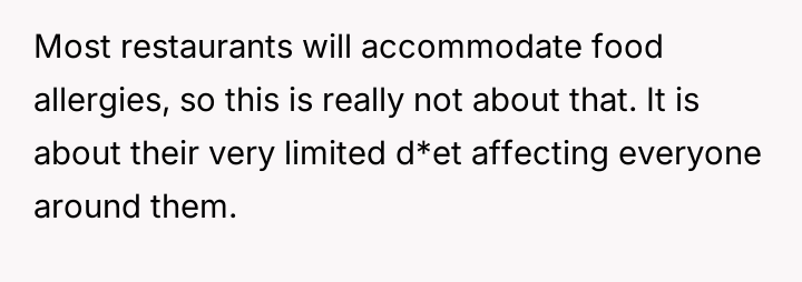 These d*etary restrictions severely limit where the family can eat out, often forcing them to choose from a very small selection of fast-food places, even for the OP's celebrations.
