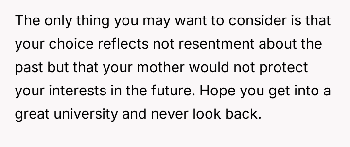 Is the OP justified in viewing this past decision as a major reason for their current estrangement from their mother?