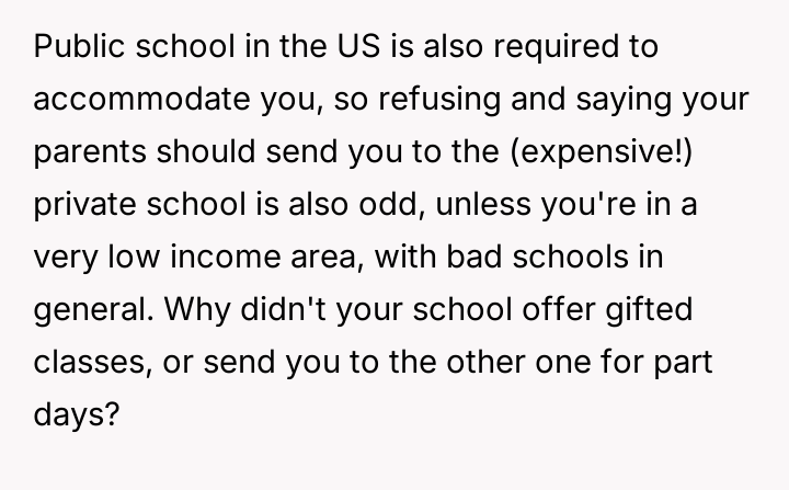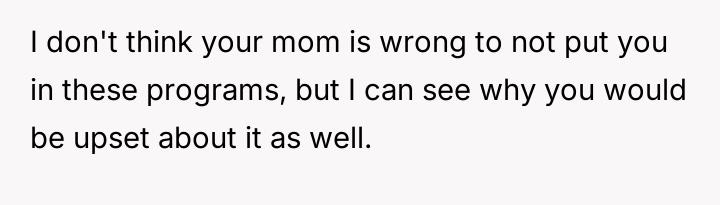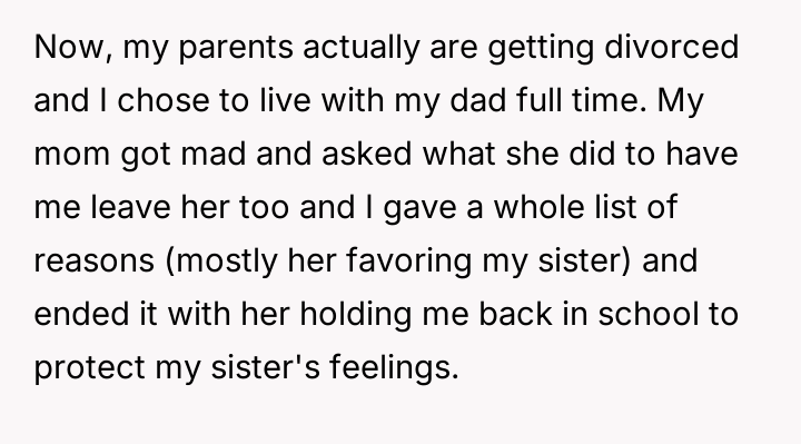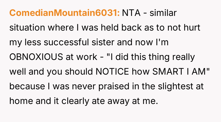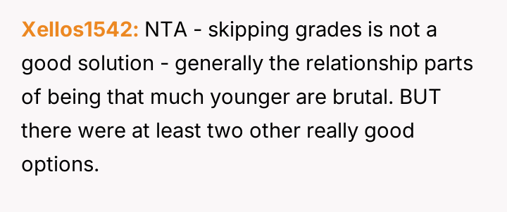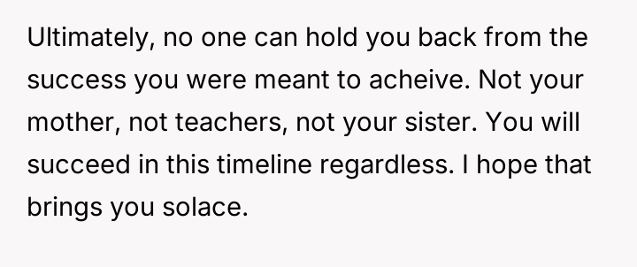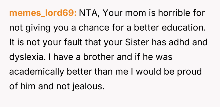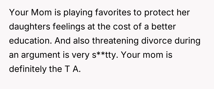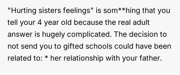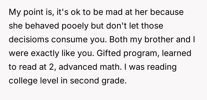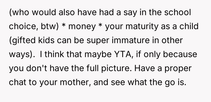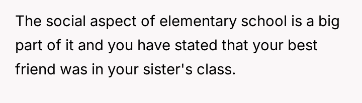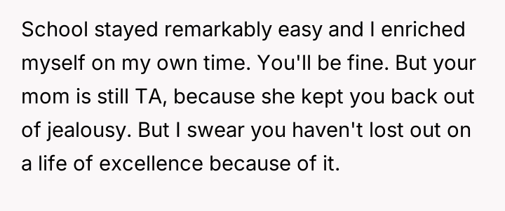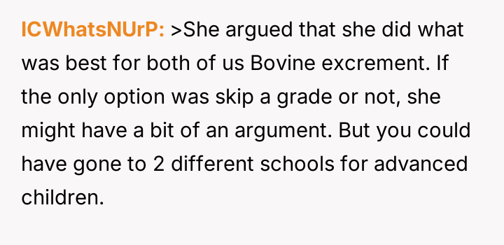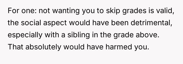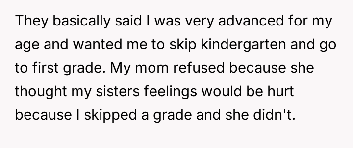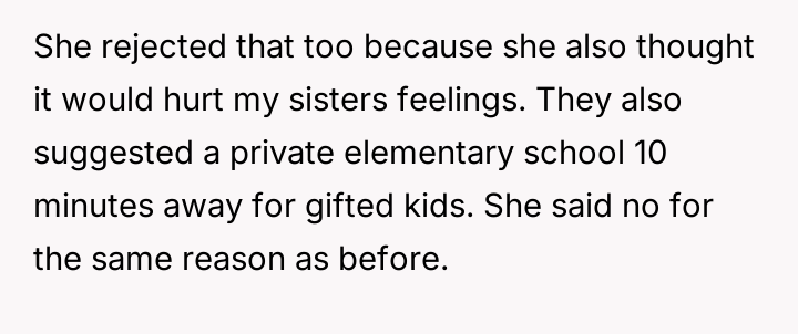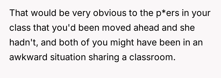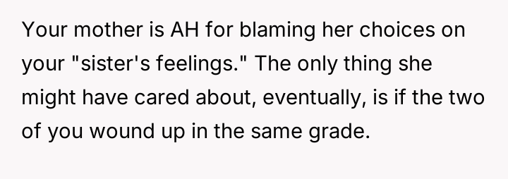 Was the mother justified in sacrificing the OP's advanced educational track to prioritize the sister's emotional comfort and perceived need for parity, or did this action const*tute an unfair suppression of the OP's potential?
