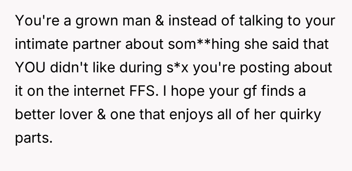The central question is whether the girlfriend's reaction was an innocent, albeit poorly timed, expression of excitement, or if it indicated a fundamental misalignment in how she perceives or expresses intimacy during s*x compared to the narrator.