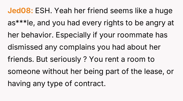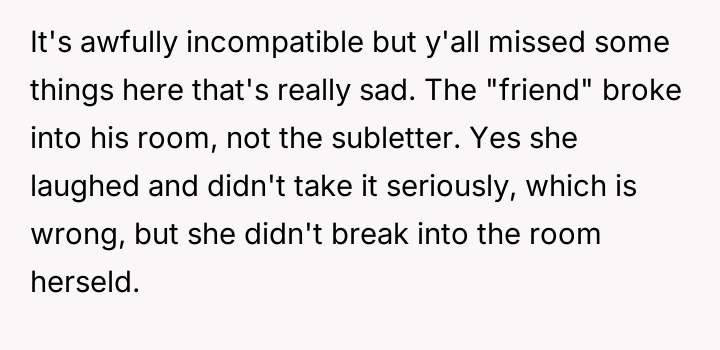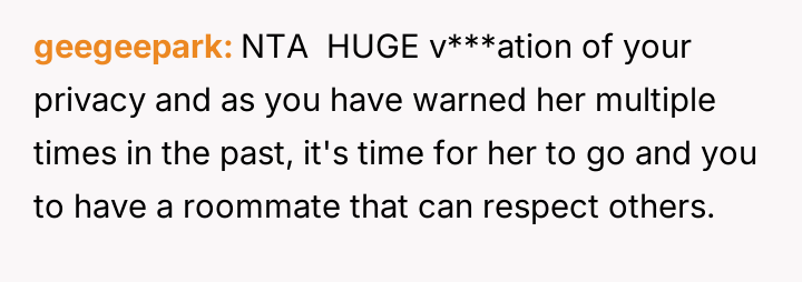 The question remains whether the OP's immediate and absolute termination of the living arrangement is a justified response to the highly invasive incident, or if it const*tutes an overly harsh reaction given the roommate's partial financial contribution.