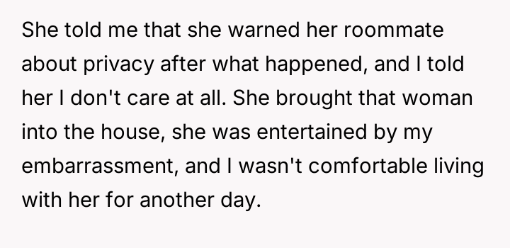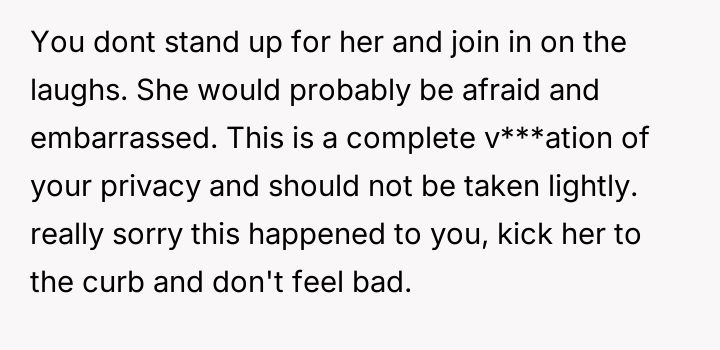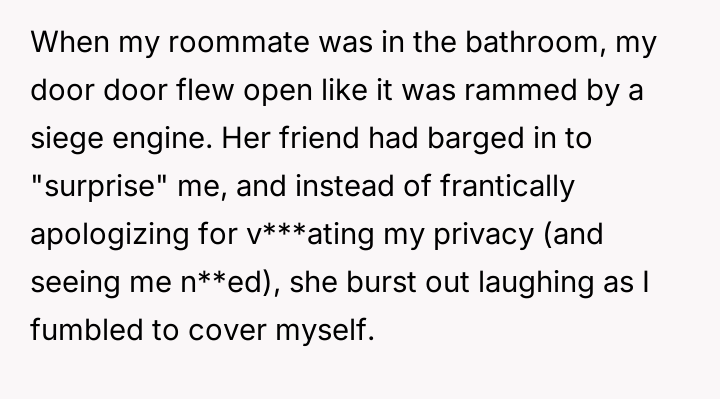 The original poster (OP) is experiencing significant distress due to a severe v***ation of personal privacy by their roommate's friend, an incident which the roommate appeared to find amusing.