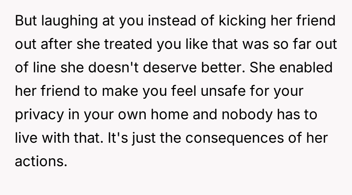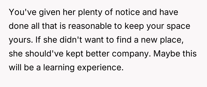 In response to this boundary breach and a pattern of disrespectful behavior from the friend, the OP has decided to terminate the living arrangement for the roommate, citing immediate discomfort and lack of safety.