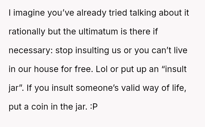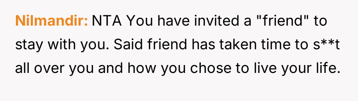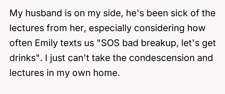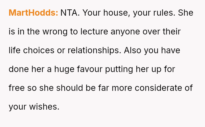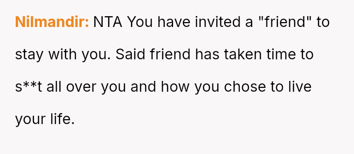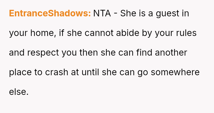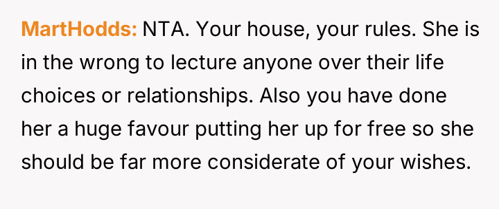 Considering the temporary nature of the stay, was the OP justified in reacting strongly to the culmination of boundary v***ations and condescending lectures, or did the OP overreact by issuing an ultimatum, potentially jeopardizing the relationship and the help being provided?
