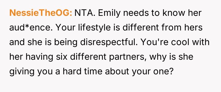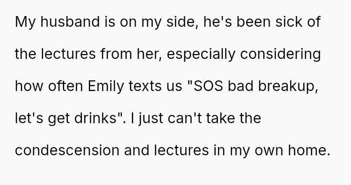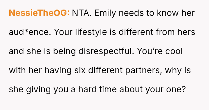 The central conflict lies between the OP's right to set boundaries in their own home and Emily's perception that these boundaries infringe upon her lifestyle and beliefs.