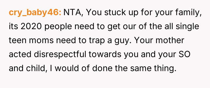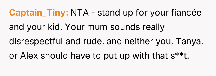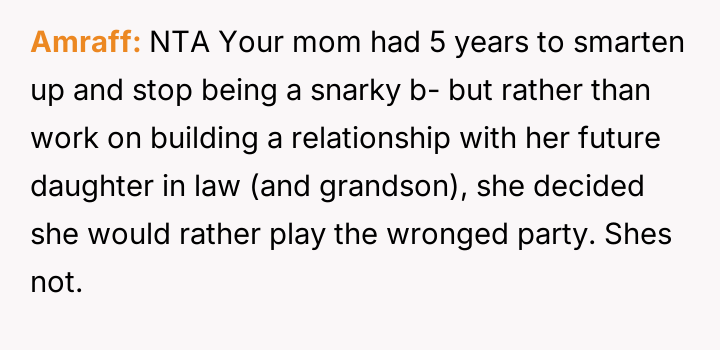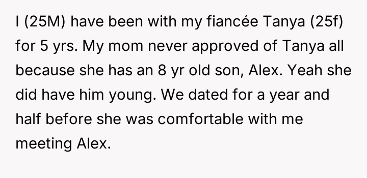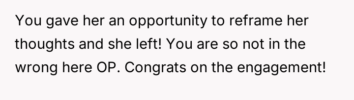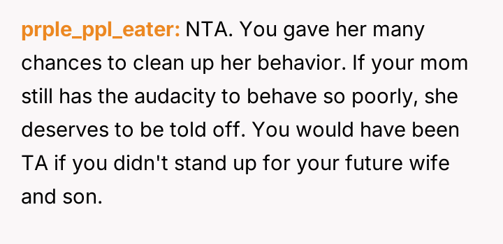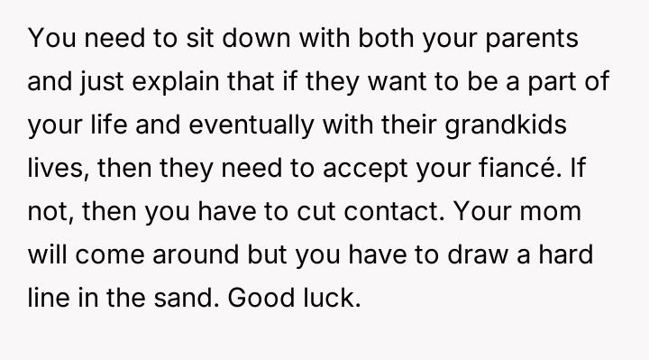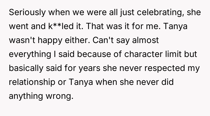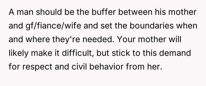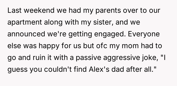 The original poster (OP) reached a breaking point after years of his mother's disrespectful comments toward his fiancée, culminating in a highly inappropriate remark during their engagement announcement.