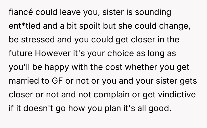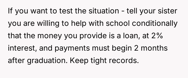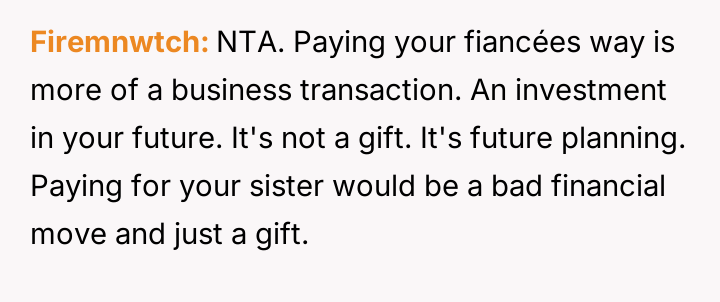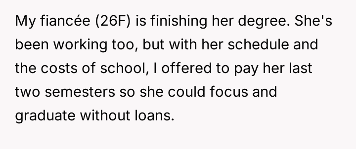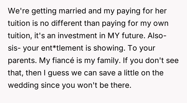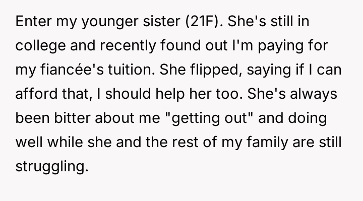 AITA for not paying for my sister’s college when I’m paying for my fiancée’s?