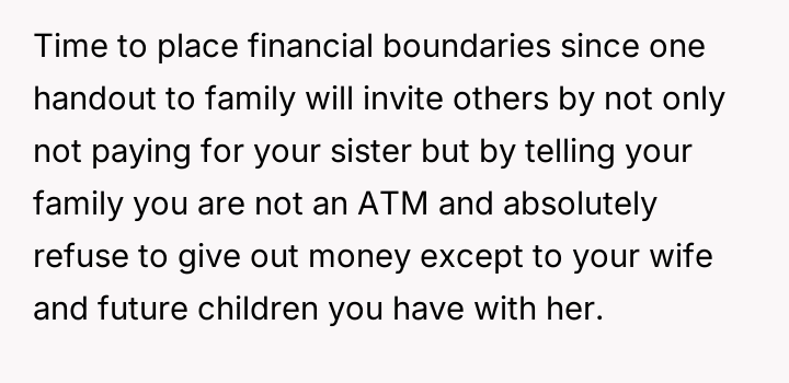 Is the OP correct to draw a firm financial line to protect the future he built with his fiancée, or does his past experience of poverty mandate an ongoing, equal obligation to support his sister's education and appease his parents' call for 'family first'?