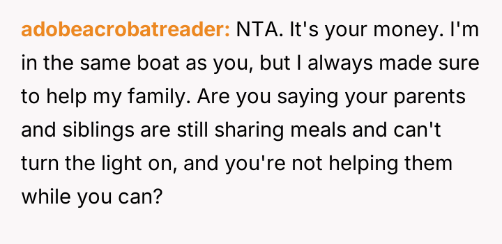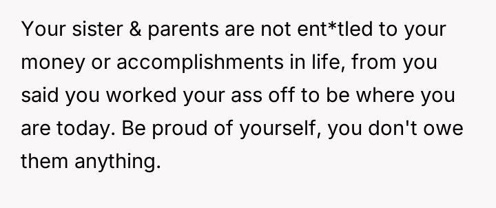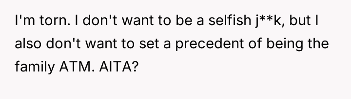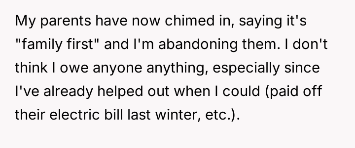 The original poster (OP) is facing significant emotional conflict, pulled between his es**blished financial independence and his sense of duty to his struggling family.