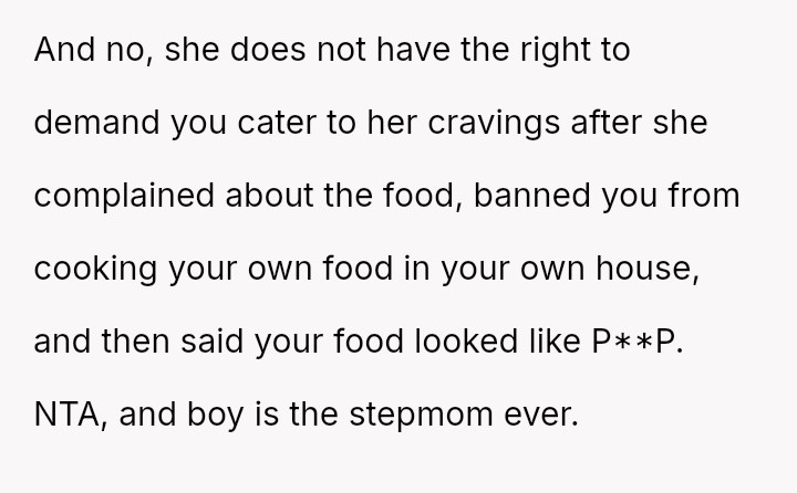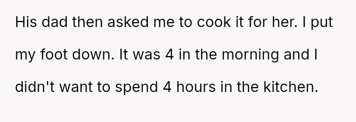 Was the OP justified in refusing to cook a large meal in the early morning hours, or did the stepmother's advanced pregnancy and subsequent craving create a temporary situation where the OP should have made an exception out of compa*sion?
