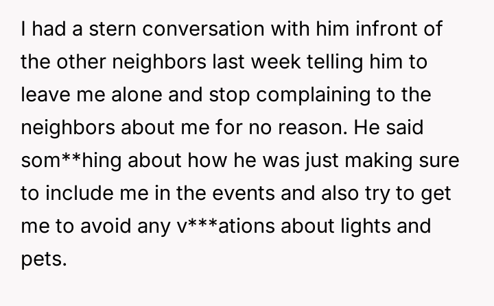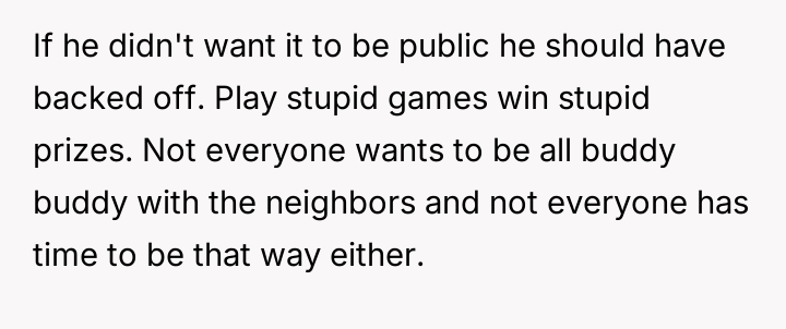 The OP responded by sharing this aggressive message publicly, which escalated the situation further by involving the wider neighborhood community.