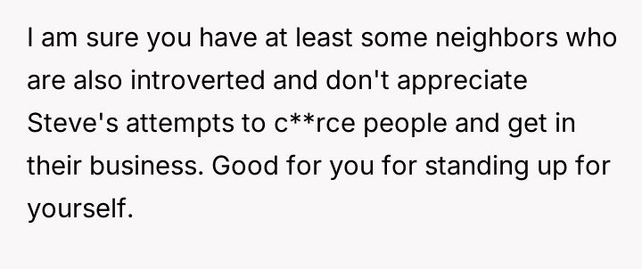 The original poster (OP) is facing significant conflict due to their desire for privacy and distance from a persistent and influential neighbor, Steve.