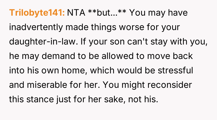 AITA for telling my son he can't stay with me when I found out why his wife kicked him out.