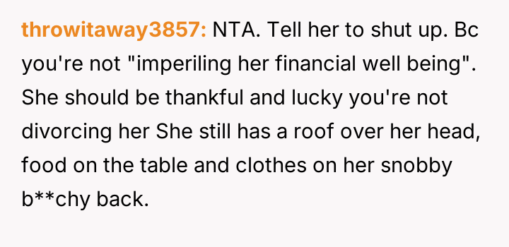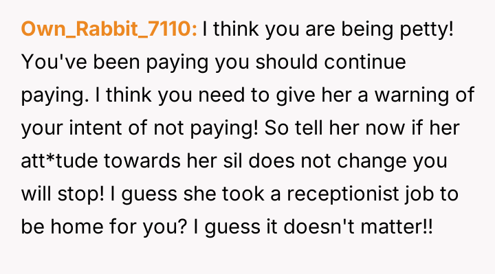Does the wife's verbal aggression and belittling of the sister justify the husband's unilateral financial action to halt student loan payments, or is the husband escalating the conflict by using their shared finances as punishment for her social misstep?