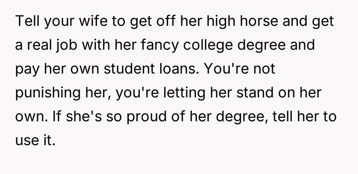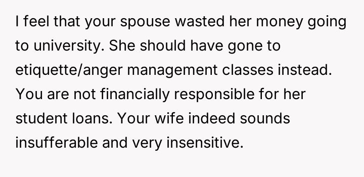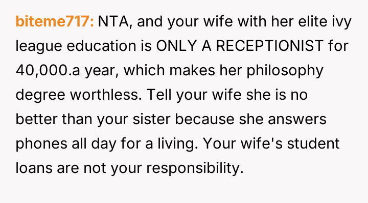 AITAH for not making payments towards my wife’s student loans after she insulted my sister’s education?