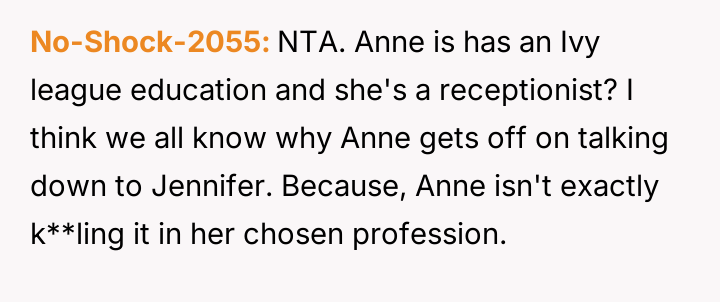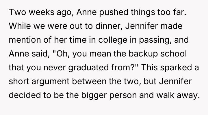 Anne’s Ivy League education and sharp tongue cast shadows over Jennifer’s struggles, igniting a silent battle of worth and respect.