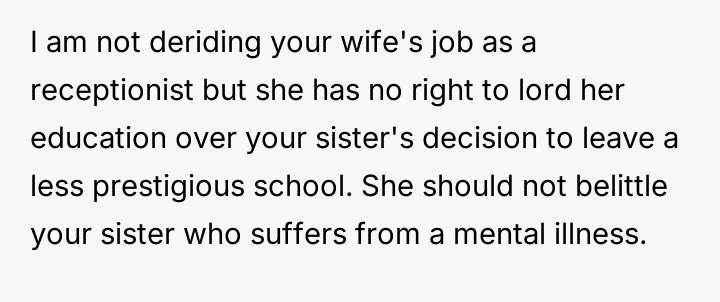 The Original Poster (OP) has reached a breaking point regarding his wife's condescending behavior toward his sister, using his decision to stop paying her student loans as a direct response to a public insult.