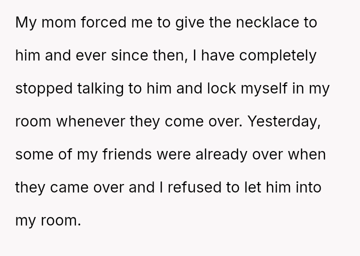 She initially dismissed her autistic neighbor's request for her necklace as a joke, but he interpreted it as a genuine agreement.