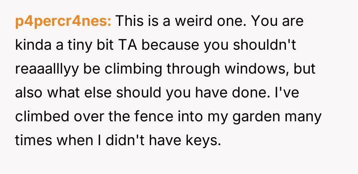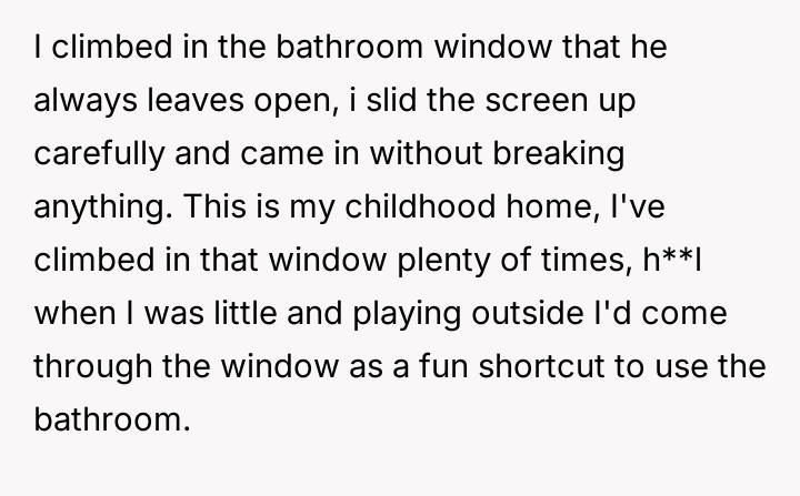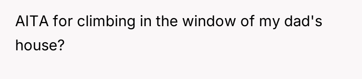 AITA for climbing in the window of my dad's house? He changed the locks to keep my mom (divorced) out but I was supposed to be at his house for the weekend.