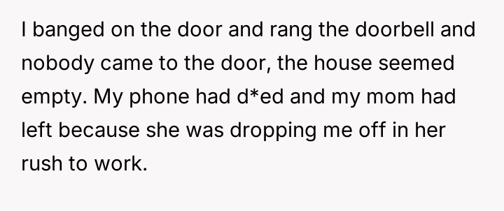 The weight of broken promises settled heavily on the child's shoulders as they stood locked out of the home that was supposed to be a sanctuary.