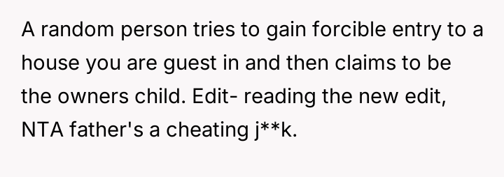 Should the OP be held accountable for entering the house using a known entry point when facing unsafe conditions, or does the father bear primary responsibility for failing to ensure access and for introducing an unexpected guest during a custody transfer window?