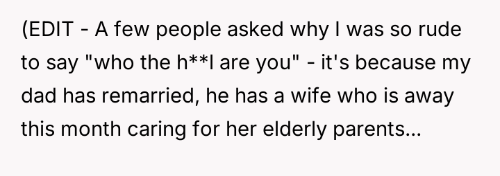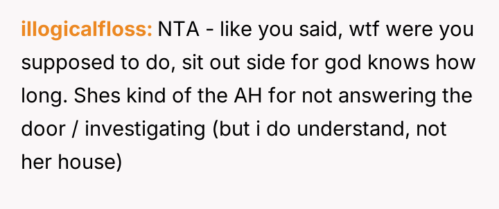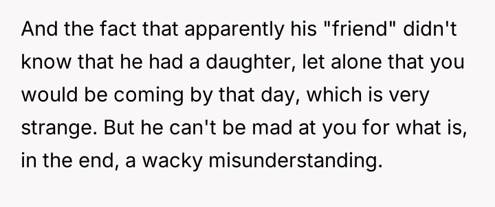 The central conflict arises because the father became upset, focusing on the perceived threat the OP posed to his female guest, rather than acknowledging the logistical failure that prompted the entry.