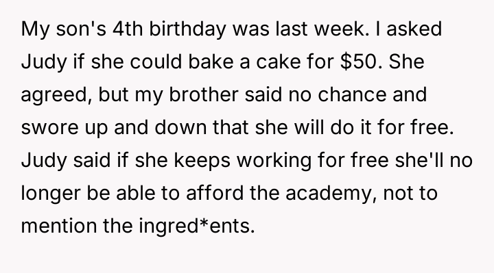 AITA for paying my niece 50$ for the birthday cake she made for my son's birthday?