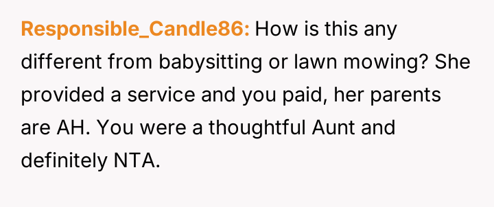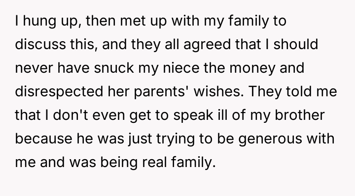 This action led to the niece being punished and the OP facing unanimous disapproval from extended family members who prioritized the parents' authority and the notion of free family favors.