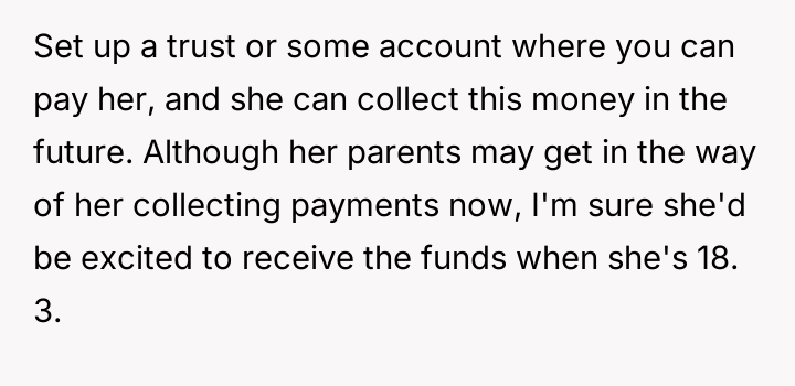 Does the preservation of a child's educational aspirations and fair compensation for work outweigh the parents' stated desire for free services based on familial relationship, especially when payment was offered privately to circumvent parental disapproval?