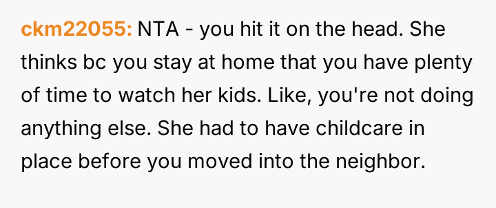 AITAH For Telling My Neighbor I Have No Desire or Obligation To Babysit Her Children Because I'm A SAHM?