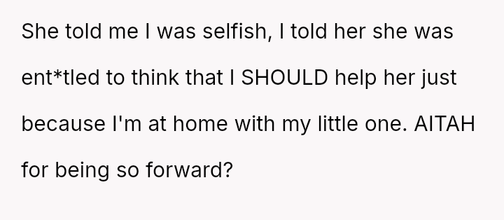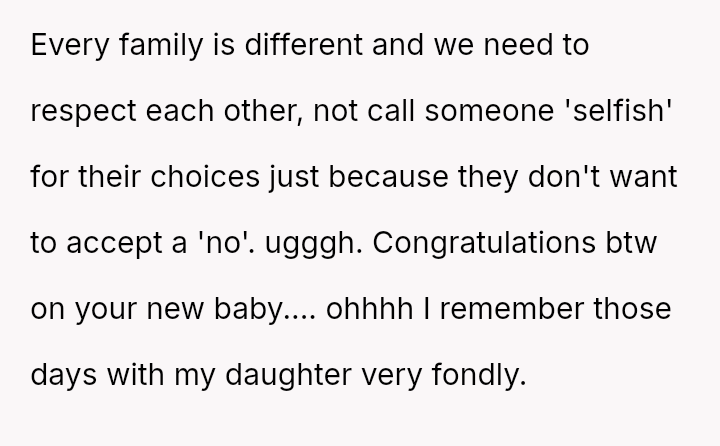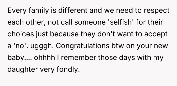 Was the OP being selfish, or was she correctly prioritizing her family's needs and es**blished boundaries?