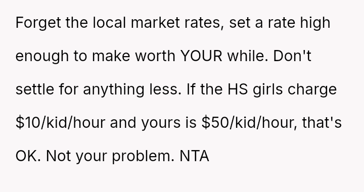 The core issue revolves around valuing the OP's unpaid labor and personal capacity versus the neighbor's need for childcare.