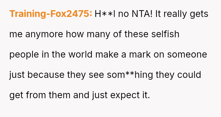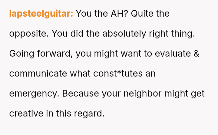 The neighbor reacted negatively, accusing the OP of being selfish for refusing regular help, leading the OP to question if her firm refusal was inappropriate.