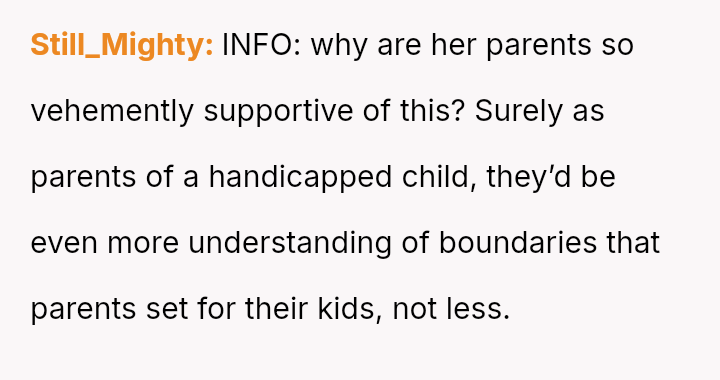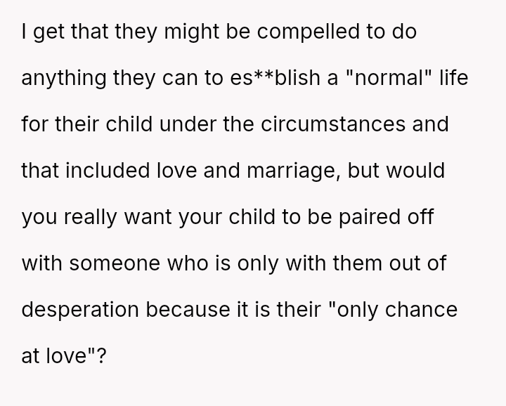 The core conflict lies between the parents' perceived duty to protect their non-disabled son from a potentially harmful situation, versus the son's strong emotional desire for the relationship and the group's overwhelming support for the couple.
