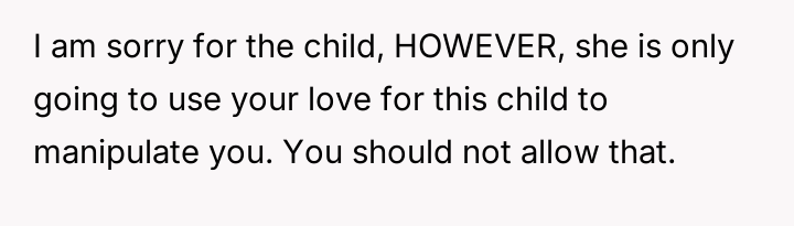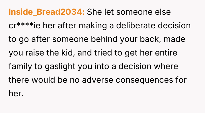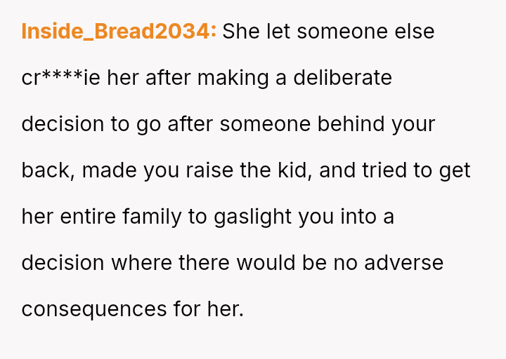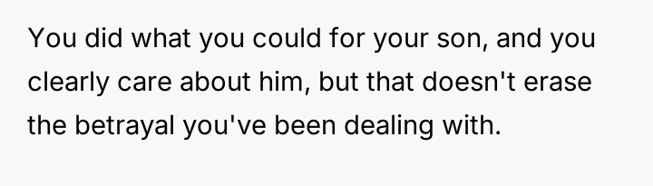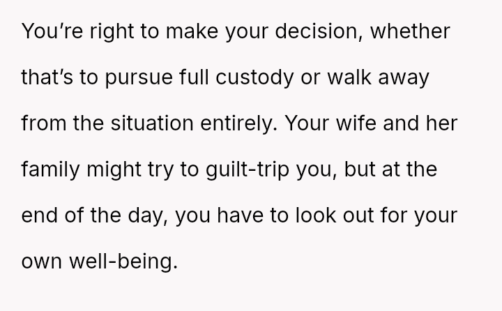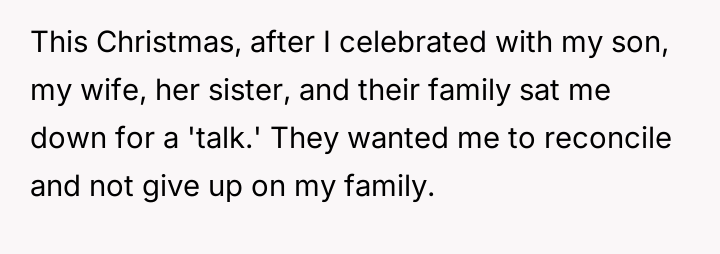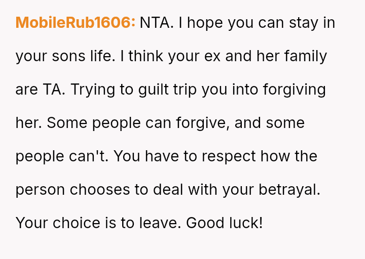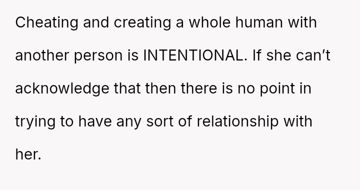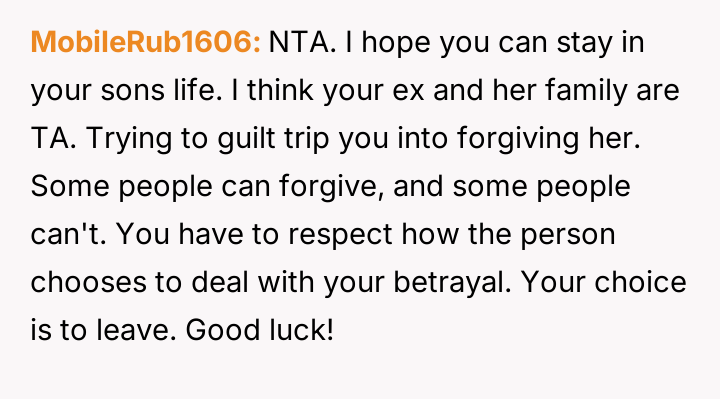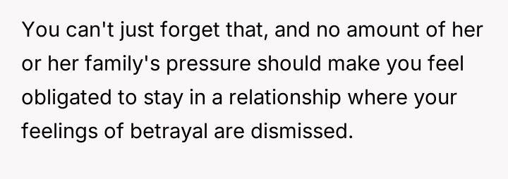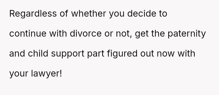 However, the wife and her family are actively pressuring him to stay and reconcile, arguing that the es**blished peace and his love for the child outweigh the past betrayal.