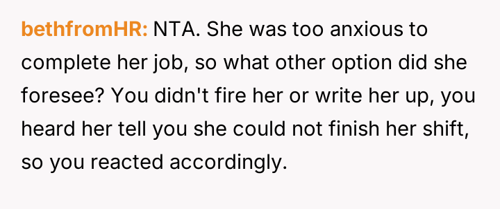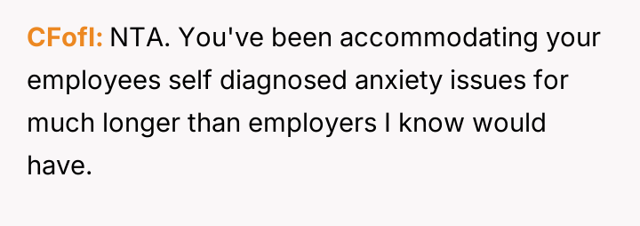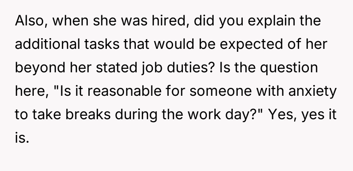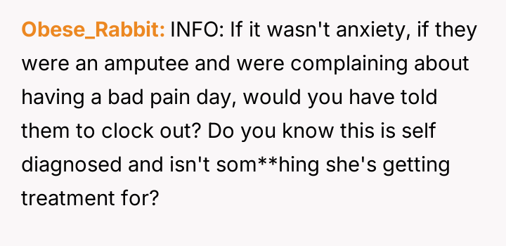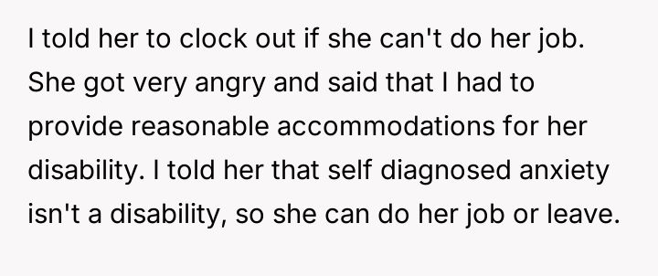 AITA for telling my employee to clock out if she can’t work due to her self diagnosed anxiety?