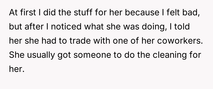 Her avoidance of cleaning tasks, masked by feigned anxiety and physical discomfort, began to unravel the trust that had been carefully woven over three years.