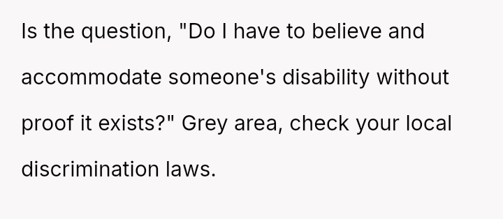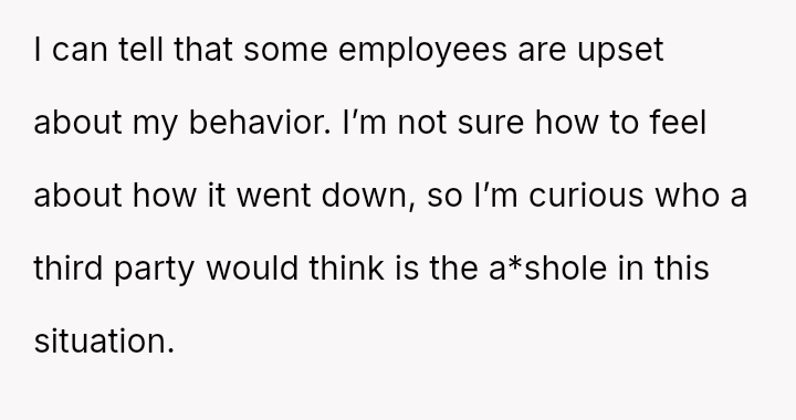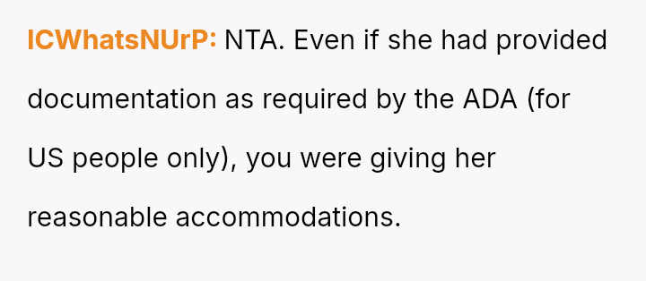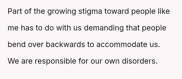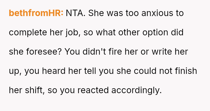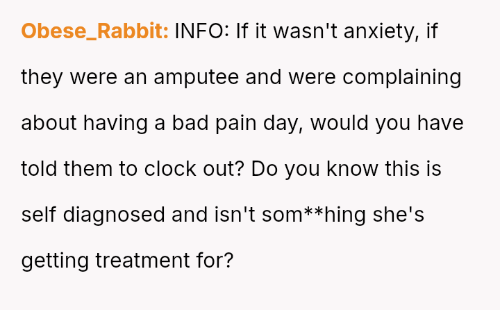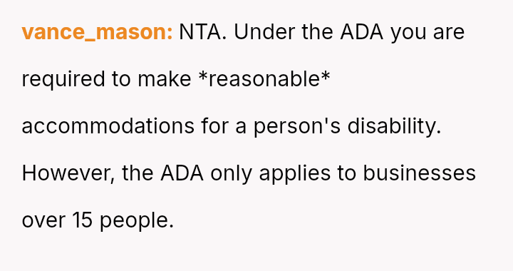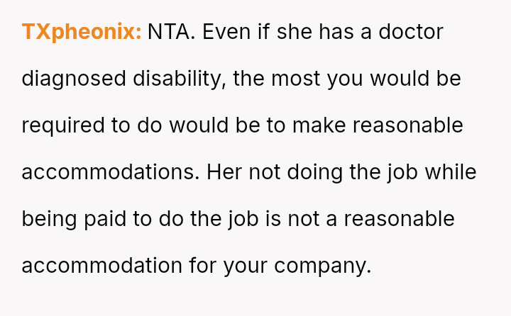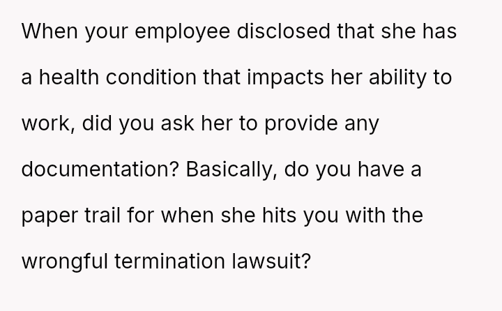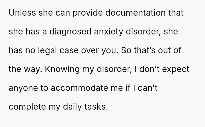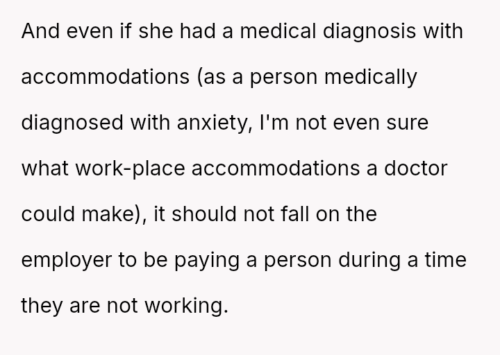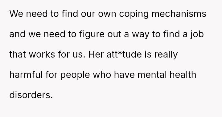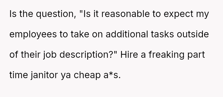 The business owner experienced a direct conflict when an employee refused to complete a rotating ch**e, claiming anxiety prevented her from taking out the t**sh.