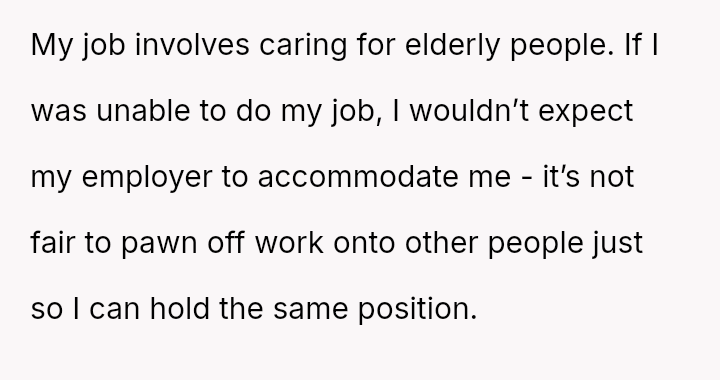 Was the business owner justified in refusing to provide further accommodation for a ch**e that was part of the es**blished job rotation, or did they fail in their responsibility to address a potentially legitimate health concern regarding an employee's job duties?