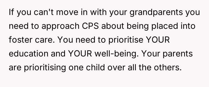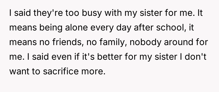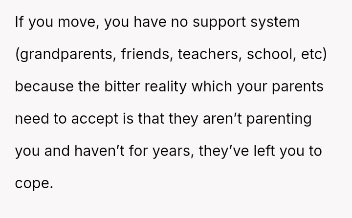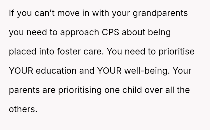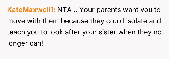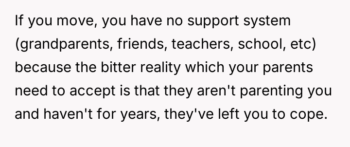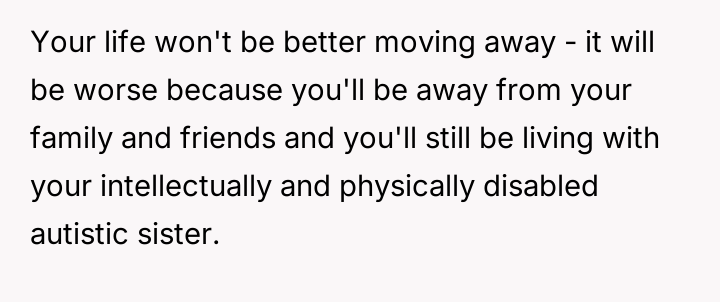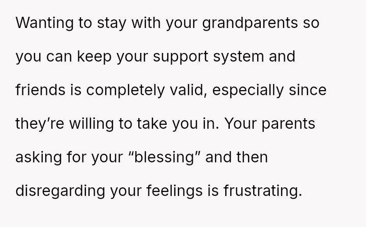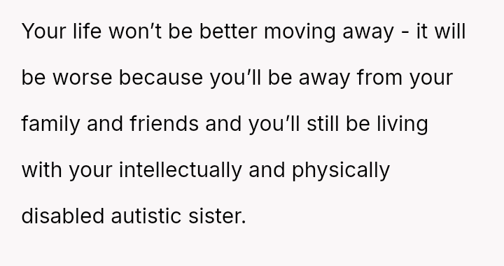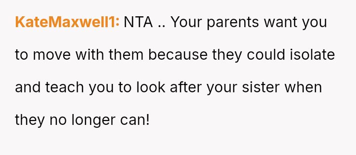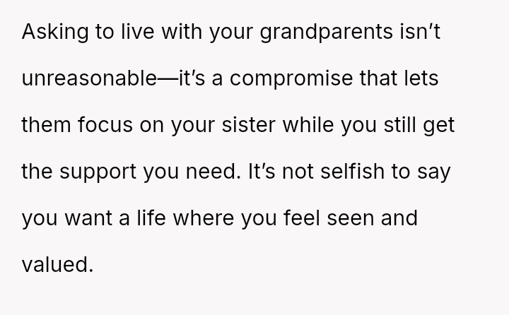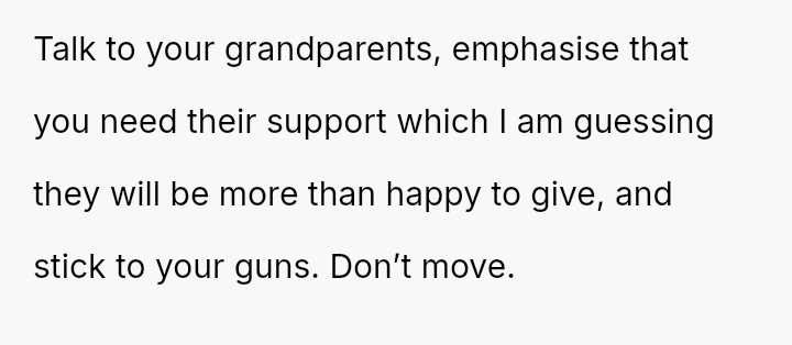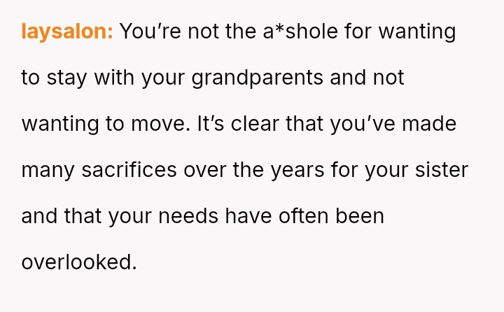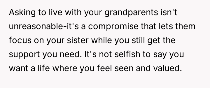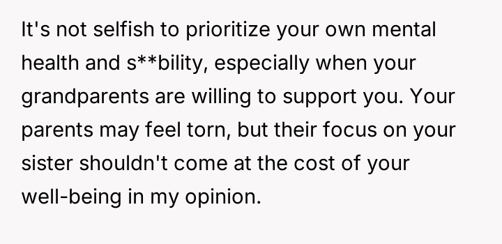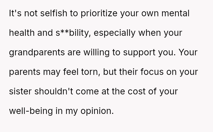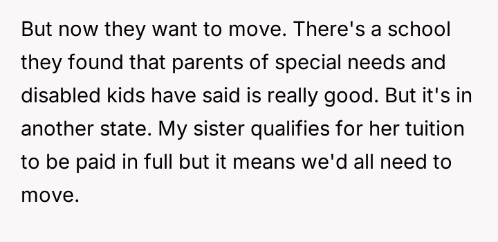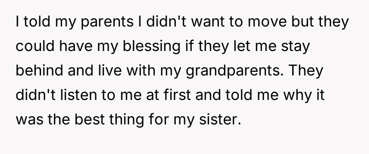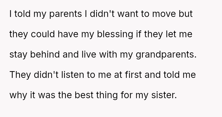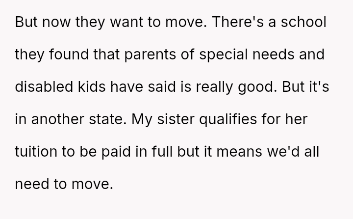 Should the parents prioritize the sister's specialized educational needs by moving the entire family, or is the OP justified in demanding to stay behind with supportive grandparents to maintain their own well-being and es**blished support system?