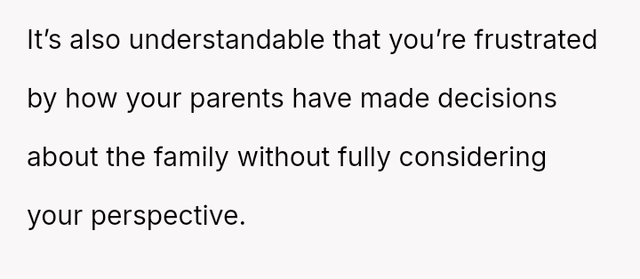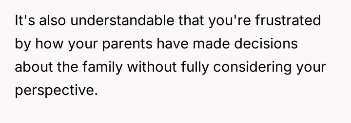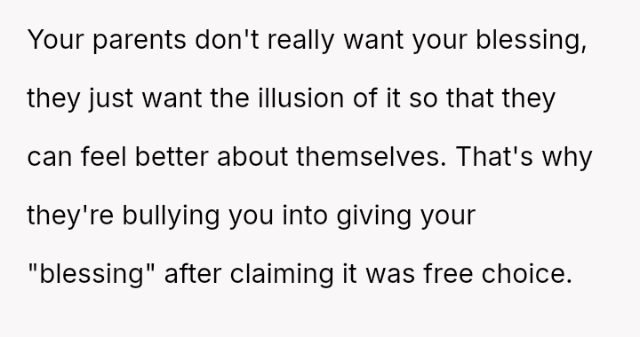 Is it reasonable for the parents to insist on unanimous family approval when the OP has already given so much?