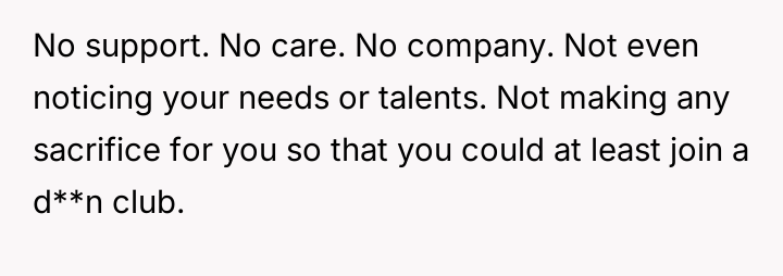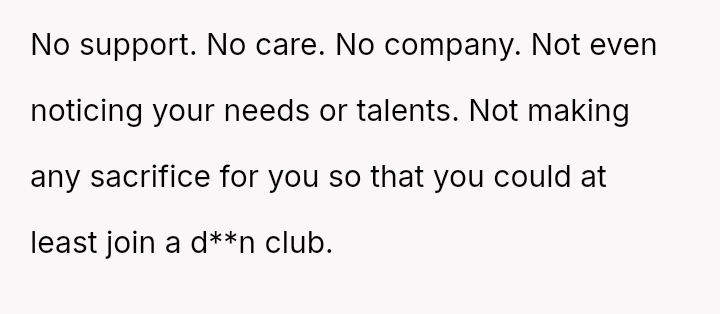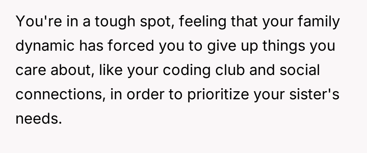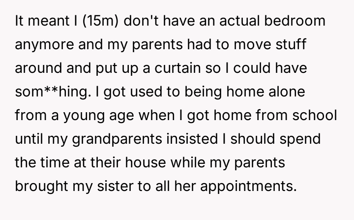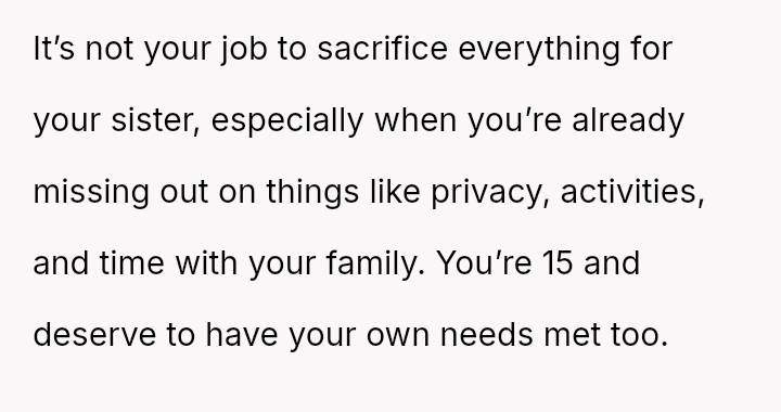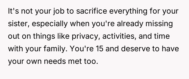 Their parents, stretched thin and deeply committed, even gave up their home to provide the support she requires, leaving him with little more than a curtained-off corner to call his own.