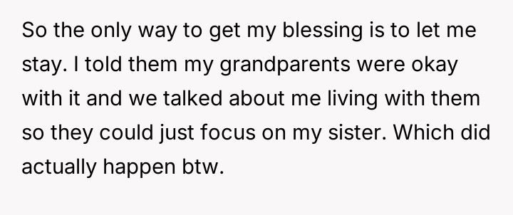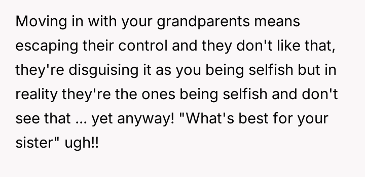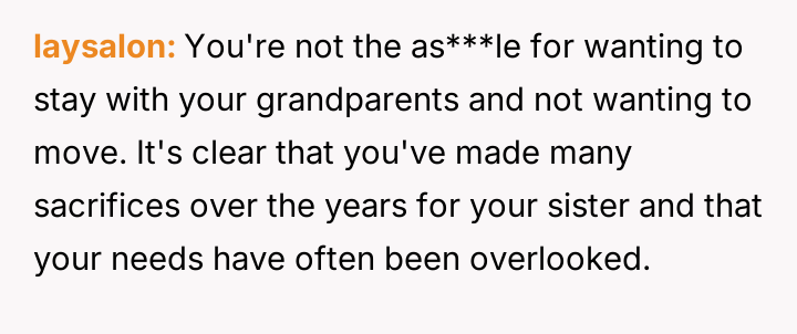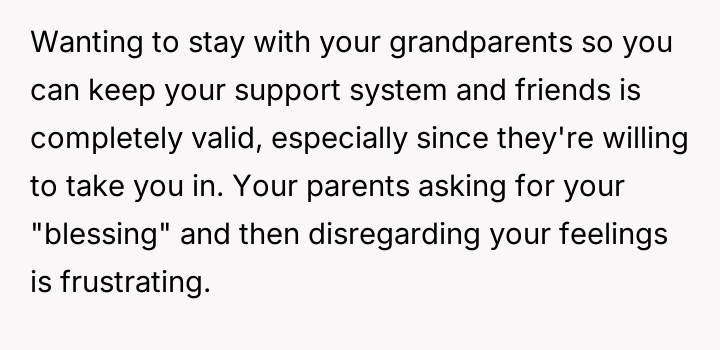 AITA for not thinking of my sister's needs by saying I won't give my blessing for my family to move unless I can stay with my grandparents?
