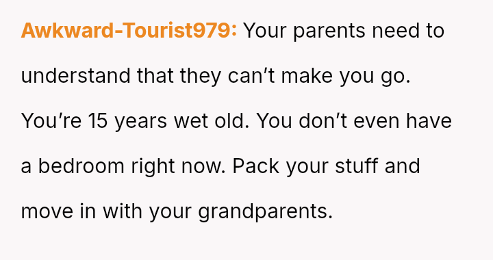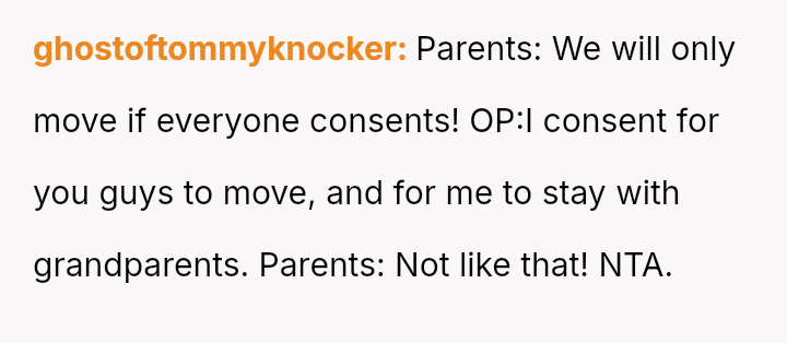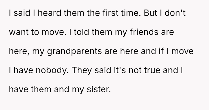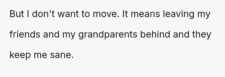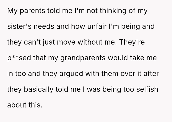 The central conflict arises because the parents demand the OP's full support for a major move to benefit the sister, while the OP a*serts their need for s**bility, friendships, and connection with their grandparents, viewing continued sacrifice as unfair.