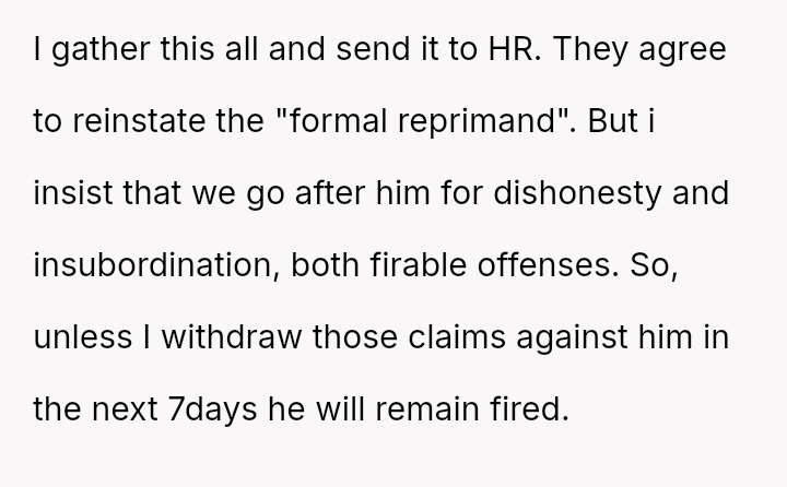 Given the documented pattern of behavior and the proven falsehoods presented to HR, was the OP justified in escalating the disciplinary action, potentially leading to termination for dishonesty, or did the initial reprimand and subsequent aggressive follow-up cross the line into unfair management practice?